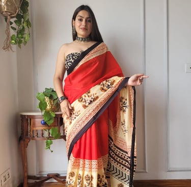 Hand block printed mulmul sarees